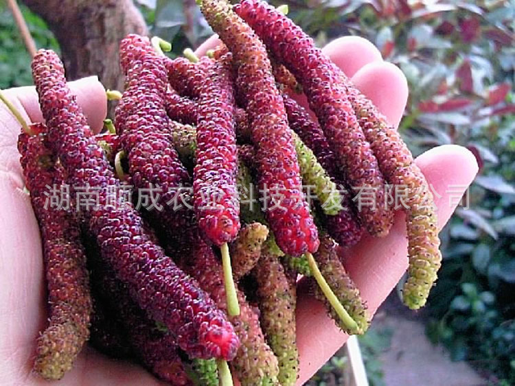 臺灣長果桑,即臺灣四季長果桑,是由臺灣農(nóng)業(yè)專家以臺灣普通果桑與野生的長果桑雜交后培育而成,因果桑一般長達12厘米,長可達18厘米而得名。大的單果重20克,含糖量22度左右。無酸味,口感濃甜似蜜。當(dāng)年春季栽培秋季即可結(jié)果,以后每年多次結(jié)果,豐產(chǎn)期畝產(chǎn)一般可達3000~3500公斤,高產(chǎn)地塊可達4500公斤以上,產(chǎn)量是一般果桑2倍左右。臺灣長果桑是農(nóng)業(yè)產(chǎn)業(yè)結(jié)構(gòu)調(diào)整和觀光采摘園的好品種,也可開發(fā)生產(chǎn)果桑酒、果桑汁、果桑醬及其他系列產(chǎn)品?,F(xiàn)將其種植技術(shù)介紹如下: