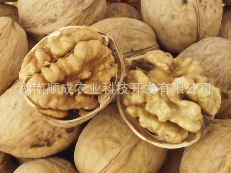 紙皮核桃:殼薄如紙,指捏即破,故稱紙皮核桃。果實(shí)個(gè)大,殼薄光滑,種仁易取,單果重14克,出仁率高達(dá)65%以上,核仁出油率達(dá)50%,味美,即可生食,又可炒食,也可榨油或配制各種糕點(diǎn)和糖果,還含有多種維生素及礦物質(zhì)元素。核桃木質(zhì)堅(jiān)硬,紋理秀麗,為工業(yè)器械用材,核果殼可制活性炭,樹皮、果皮可提煉栲膠,核桃油是食油和工業(yè)用油。