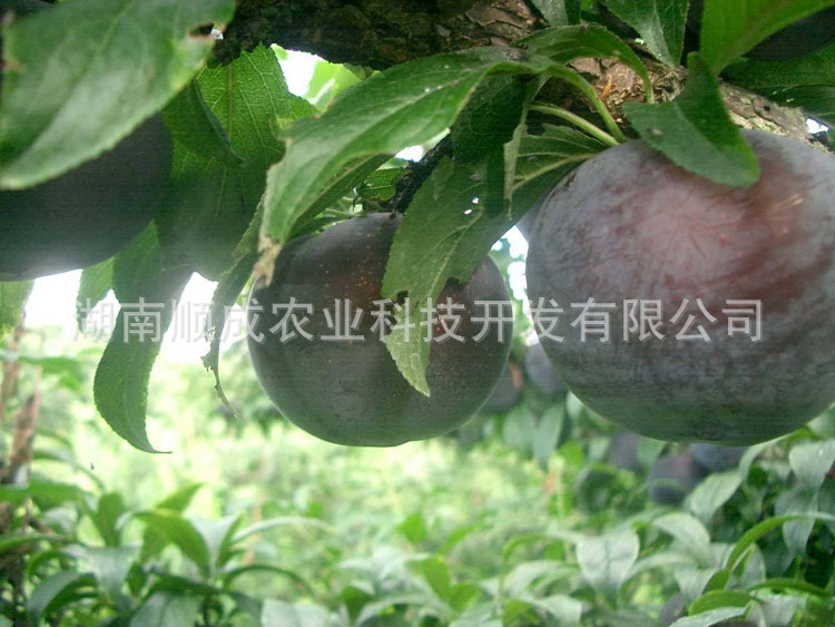 美國大黑李:美國品種,定植后,兩年掛果,第四年進(jìn)入盛果期,是美國十大推廣品種,果實(shí)成熟后,果皮呈深紅色或琥珀色,果粉厚,帶深藍(lán)紫色,果肉呈琥珀色,肉質(zhì)硬,掛果時(shí)間長,耐貯運(yùn),果型呈圓形,甜而清香,單果重150g左右,10月下旬采摘,冷庫貯藏春節(jié),元旦銷售,市場價(jià)位高。