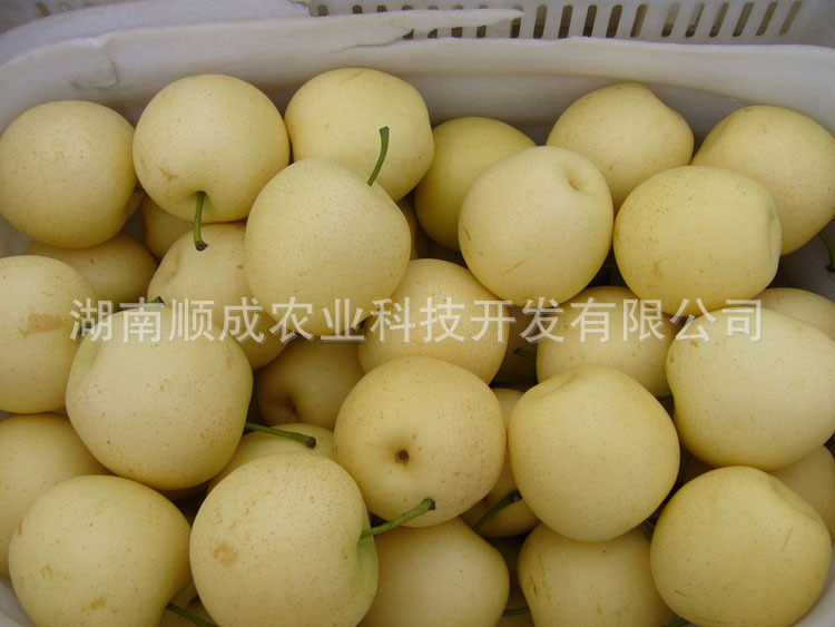 皇冠梨是梨中的早熟品種。果實(shí)橢圓形,果皮黃色,果面光潔,果點(diǎn)小,無銹斑;果心小,果肉潔白,質(zhì)細(xì)膩,石細(xì)胞及殘?jiān)伲纱喽嘀?,風(fēng)味酸甜適口。具有早果早豐、性強(qiáng)等優(yōu)點(diǎn)。 主要特征有:成熟早:7月下旬左右即可上市。 外觀美:果實(shí)橢圓,平均250克左右,果面黃白,果點(diǎn)小類似黃冠蘋果。品質(zhì)優(yōu):皮薄,肉厚,質(zhì)細(xì),松軟多汁,風(fēng)味酸甜適口且?guī)巯悖诵?,可食率高,石?xì)胞少,可溶性固形物含量11.6%。 結(jié)果習(xí)性開始結(jié)果早 一般管理?xiàng)l件下,1年生苗形成頂花芽率達(dá)17%,2~3年生即可結(jié)果。以短果枝結(jié)果為主,短果枝占68.9%,中果枝占10.8%,長果枝占16.8%,腋花芽占3.5%。一般每果臺可抽生2個副梢,連續(xù)結(jié)果能力強(qiáng)。平均每果臺坐果3.5個。采前落果輕,豐產(chǎn)穩(wěn)產(chǎn)。 物候期花芽萌動期為3月中下旬 初花期為4月上中旬,終花期為4月中旬,花期7天。新梢6月下旬停長。幼旺樹二次生長,果實(shí)8月中旬成熟。果實(shí)生育期120天。落葉期為10月下旬或11月上旬。營養(yǎng)生長天數(shù)為220~230天。