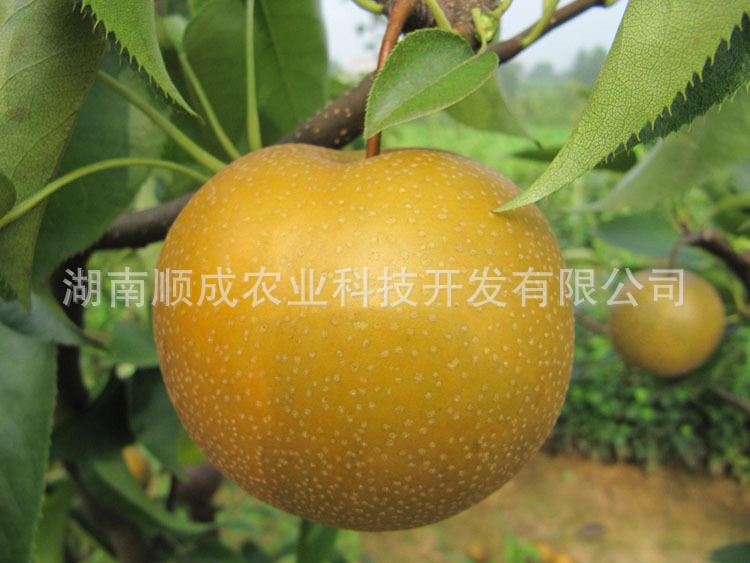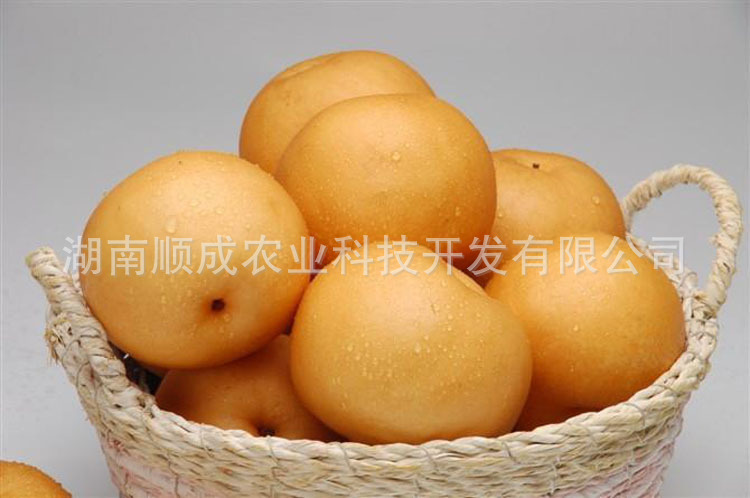該品種樹勢和萌芽力強(qiáng),成枝力中等,枝條半開張,粗壯。成花容易,自然授粉坐果率較高。結(jié)果早?;ㄑ匡枬M,花粉量多,與多數(shù)品種親和力強(qiáng),既是一個優(yōu)良的主栽品種,又是一個授粉品種。果實(shí)大,平均單果重500克左右,大果重1000克以上。果形扁圓,果面光滑平整,果點(diǎn)小而稀,無水銹,無黑斑,成熟后果色金黃。果肉為透明的純白色,肉質(zhì)細(xì)膩多汁,石細(xì)胞少,酥甜可口,并有香味,可溶性固形物含量為15-16%。果實(shí)8月下旬至9月上旬成熟,常溫下可貯藏30天左右,低溫可貯至春節(jié)以后。該品種果實(shí)成熟后園內(nèi)香氣四溢,芳香撲鼻。